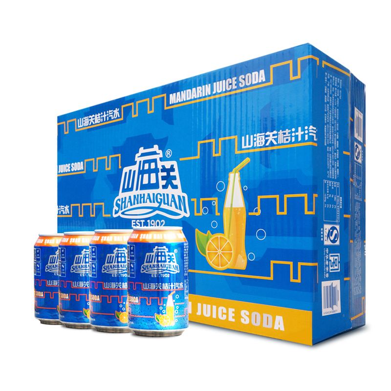 “山海關”首批推出的是傳統瓶裝橘子味汽水。在“山海關”汽水新型外包裝上,人們印象深刻的“山海關城墻LOGO”、“玻璃瓶”、“桔汁汽水”等元素都被保留,同時包裝上也積聚了更多現代元素。