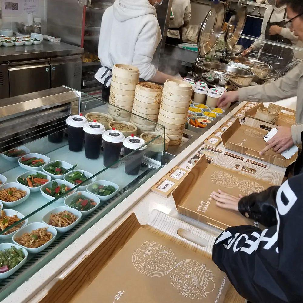 門店采用自助餐廳的運營,顧客依次按照「自取餐盤—自選小菜飲品—選擇面條澆頭—自助結賬—自助餐具回收」的步驟來點餐,極大減少了員工成本 。