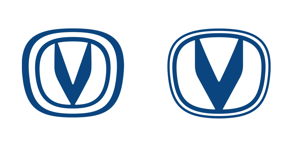 此次優(yōu)化設(shè)計(jì)再次增強(qiáng)了「V」字符號(hào)的識(shí)別性,原來比較厚實(shí)的雙線外環(huán)邊框不僅全面瘦身,而且兩條線之間的距離變得更緊湊。中心位置的空間更大,所以「V」字符號(hào)有了更大的展示空間。